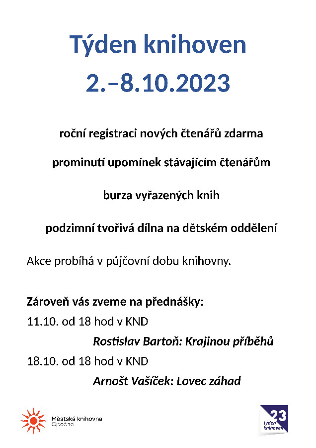 2023-10-02–OPOČNO—Knihovna – Týden knihoven—-2023-10-08 Published 27.9.2023 at 636 × 900 in Týden knihoven 2023.