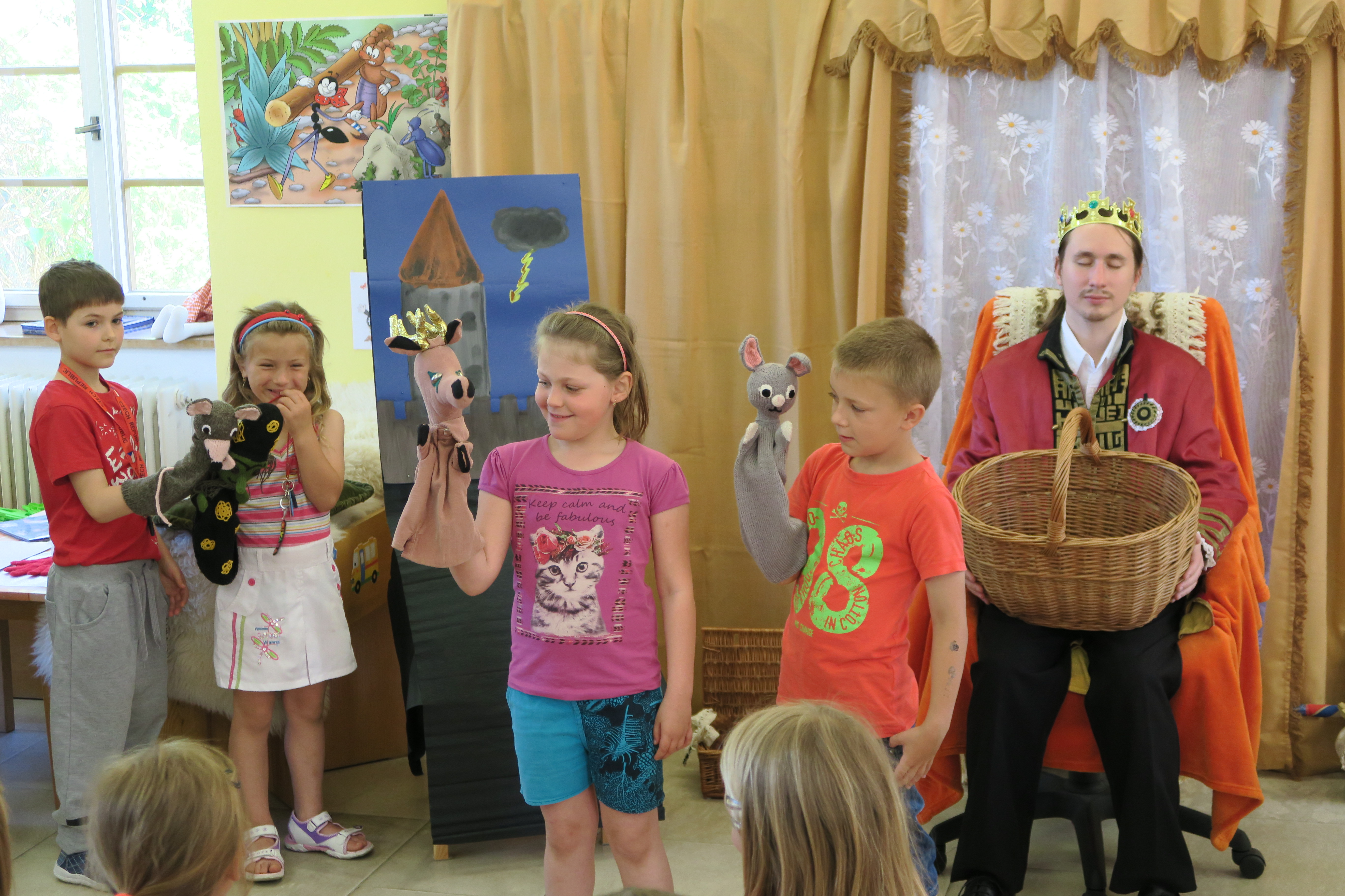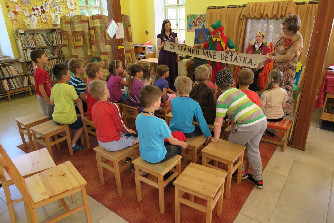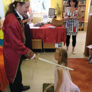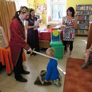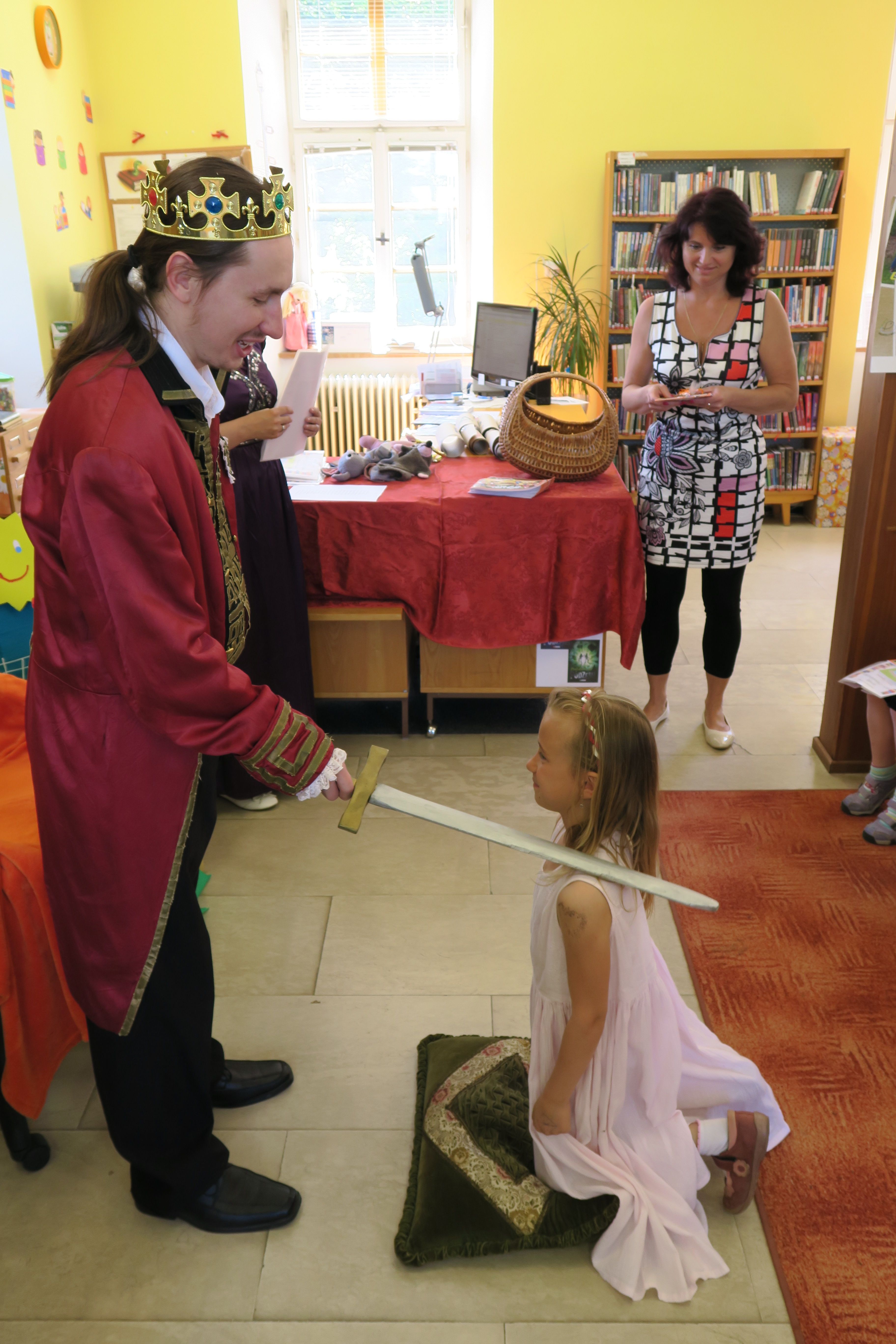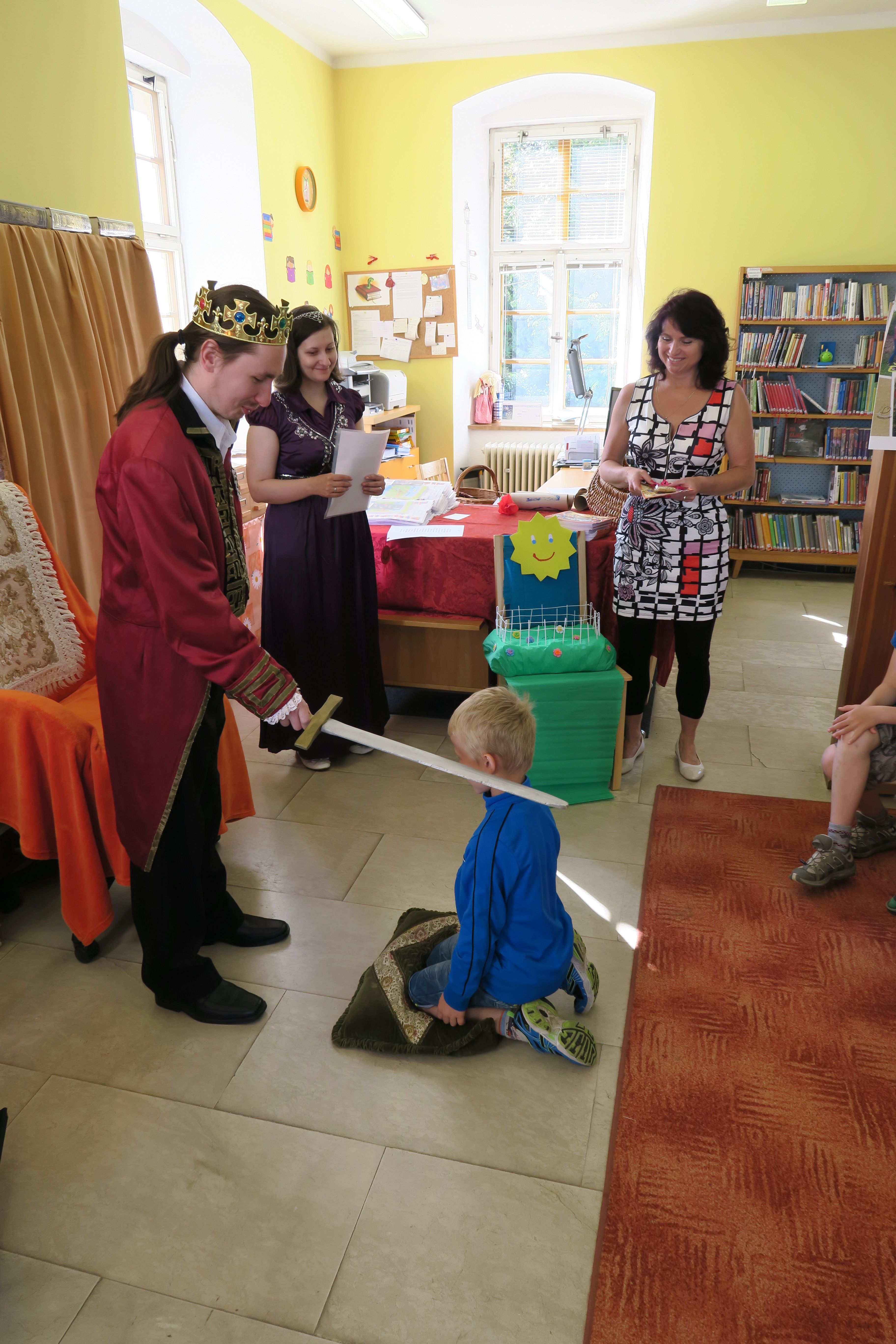 Pasování prvňáčků na čtenáře 2015 Knihovna Opočno 12.6.2015 Pasování prvňáčků na čtenáře 20152015-06-12T07:00:34+00:00 2015, Dětské oddělení Prvňáčci čekali na pana krále, ale ten spal a ne a ne se probudit… Až kašpárek přišel na to, jak pana krále probudit Ze spánku mne děťátka, … … probudí jen pohádka. Děti vymyslely a zahrály pohádku, … … pan král se probudil a za odměnu děti pasoval na čtenáře. Na památku dostaly děti diplom od paní knihovnice a na mlsný zoubek dobrotu od paní starostky. Pak si prohlížely knížky, … … časopisy … a zahrály si třeba člobrdo.