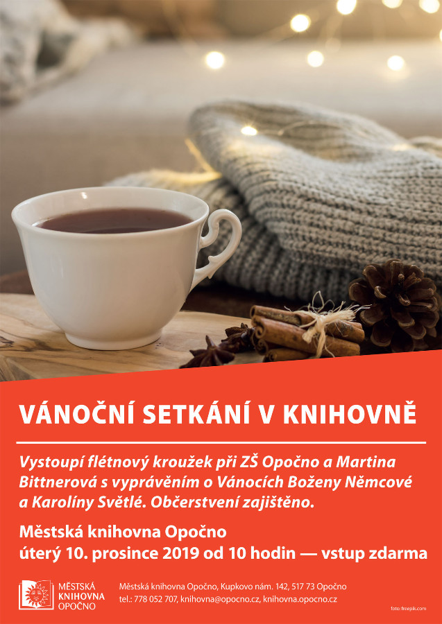 Vánoční setkání v knihovně Knihovna Opočno 7.12.2019 Vánoční setkání v knihovně2019-12-07T09:30:25+00:00 Slider obrázky úterý 10. prosince od 10 hodin