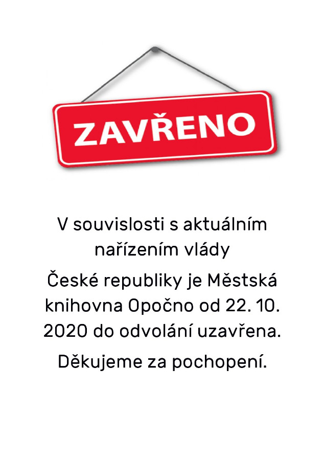 UZAVŘENÍ KNIHOVNY PO DOBU NOUZOVÉHO STAVU Knihovna Opočno 22.10.2020 UZAVŘENÍ KNIHOVNY PO DOBU NOUZOVÉHO STAVU2020-11-16T12:34:01+00:00 Slider obrázky Přečtené knihy můžete i nadále vracet do biblioboxu u vchodu do knihovny.
