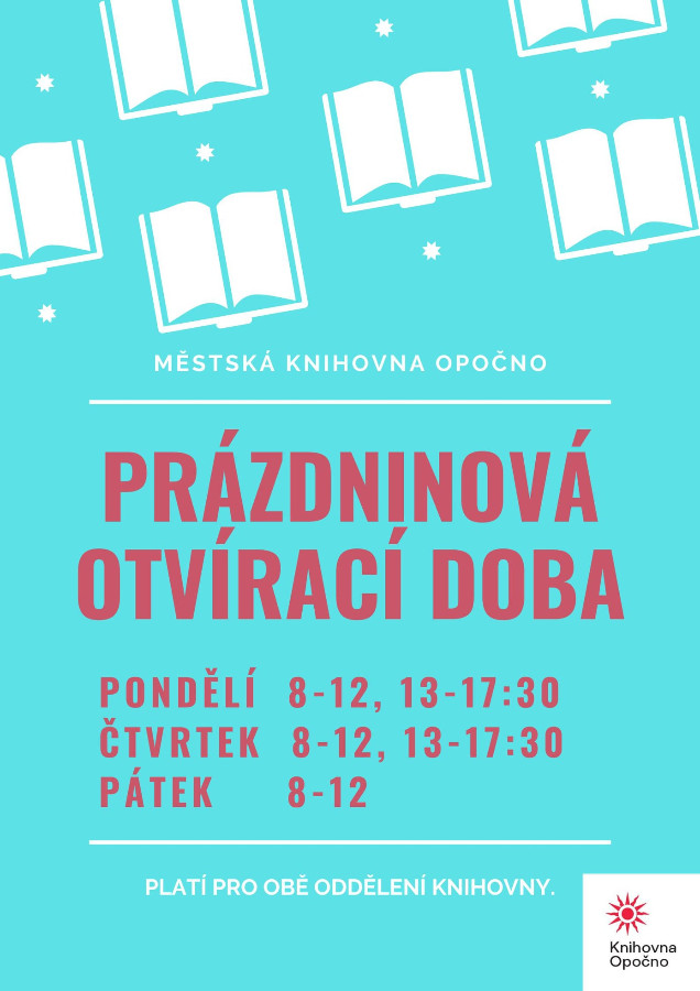 v období od 28. června do 27. srpna platí prázdninová otvírací doba knihovny. Změna se dotkne pouze oddělení po děti.