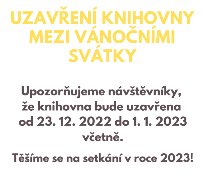 Uzavření knihovny mezi vánočními svátky. Knihovna Opočno 19.12.2022 Uzavření knihovny mezi vánočními svátky.2022-12-19T14:07:04+00:00 Slider obrázky