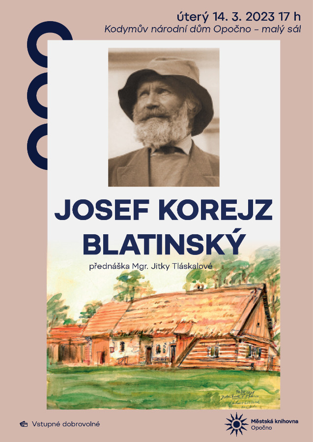 Josef Korejz Blatinský – další z cyklu výtvarných přednášek Knihovna Opočno 17.2.2023 Josef Korejz Blatinský – další z cyklu výtvarných přednášek2023-02-17T08:11:35+00:00 Slider obrázky úterý 14. března 2023 od 17 hodin v Kodymově národním domě