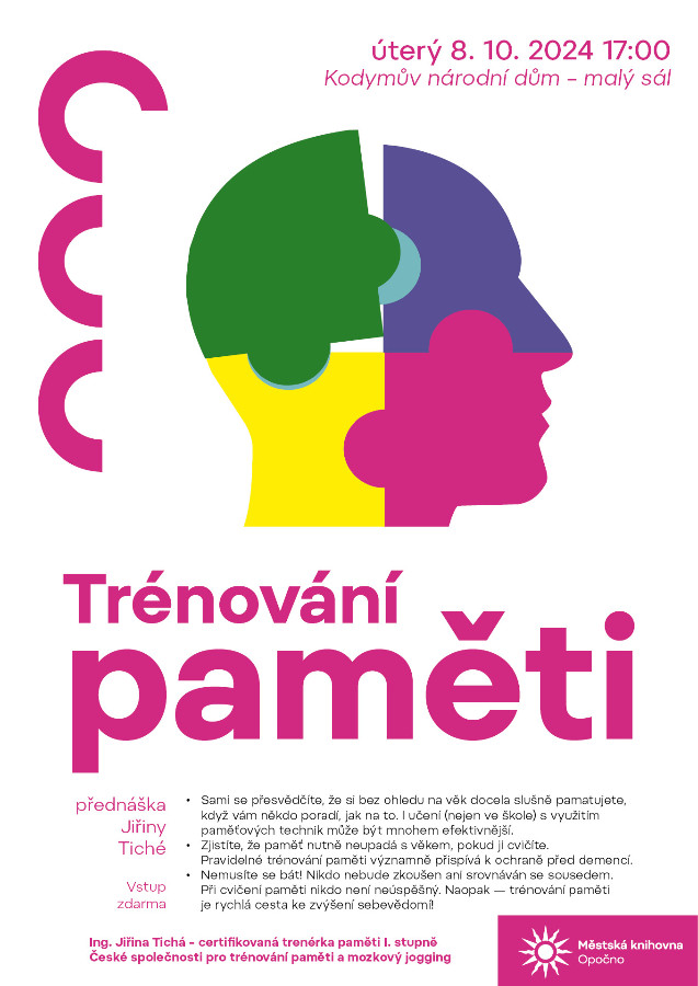 Srdečně Vás zveme na přednášku Ing. Jiřiny Tiché, certifikované lektorky, na první setkání s trénováním paměti.