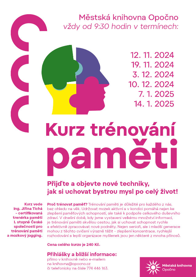 Po úvodní přednášce Ing. Jiřiny Tiché, certifikované lektorky trénování paměti o tom, jak paměť trénovat a proč, startujeme Kurz trénování paměti.
