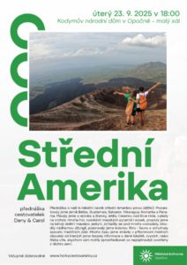 Cestopisná přednáška – Střední Amerika Knihovna Opočno 12.9.2025 Cestopisná přednáška – Střední Amerika2025-09-12T08:43:29+00:00 Oddělení pro dospělé, Slider obrázky, Zprávy úterý 23.9.2025 v 18h v malém sále Kodymova národního domu.