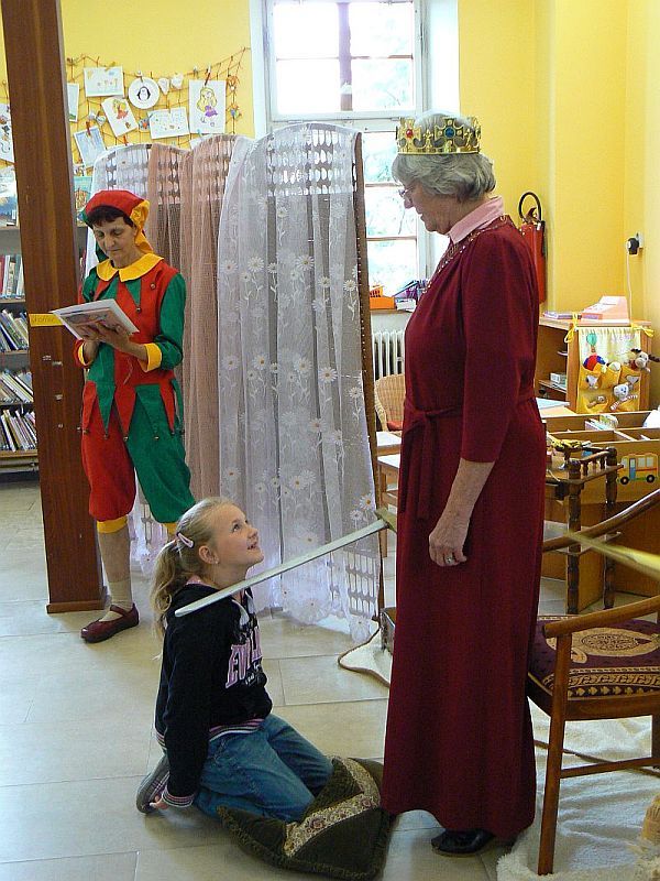 Pasování prvňáčků na Čtenáře Knihovna Opočno 16.6.2014 Pasování prvňáčků na Čtenáře2014-06-16T13:53:29+00:00 2014, Nezařazené Děti vysvobozovaly zakletou královskou rodinu Zachráněná paní královna Část prvňáčků, kteří přišli do knihovny Děti četly královně a princezně Pasování na Čtenáře, rytíře krásného slova Předávání diplomu Děti si prohlíží knihovnu a knížky Děti si prohlíží knihovnu a knížky